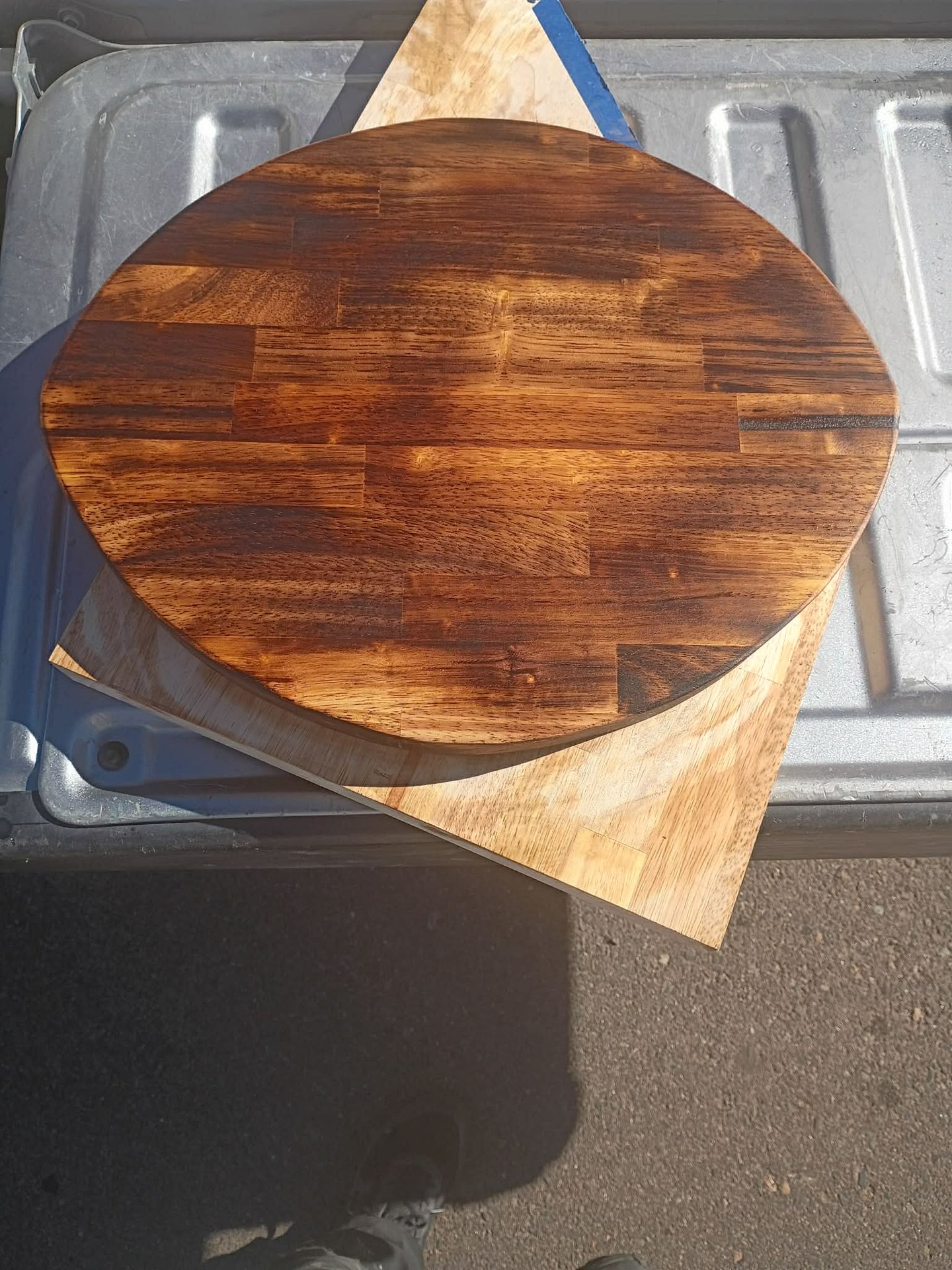 Taking a piece from extra Butcher Block from a counter top, we proceeded to do a burnt look to the wood and finished it off with an epoxy to seal the cutting board.