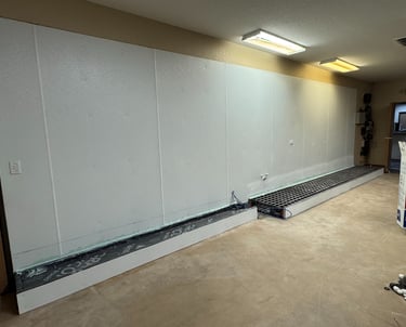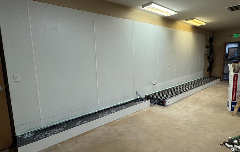 With this job, a Water Company had a bad water leak that caused some water damage because the floor was all leveled and had no way to get to the drain. We ended up waterproofing the entire wall and then building a Trench on the base of the wall; directing the water that runs down straight to the drain system.